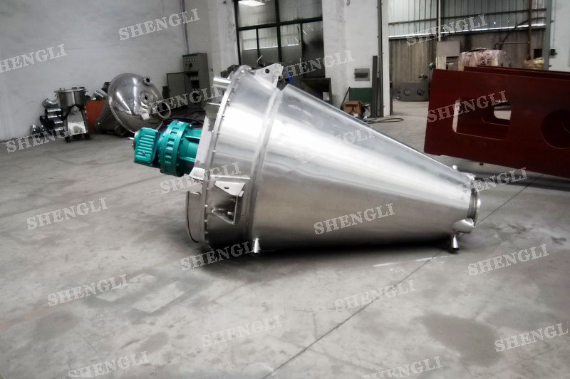 描述:雙螺旋錐形混合機內部安裝非對稱傾斜螺旋,雙螺旋自身旋轉,提升物料,并有公轉減速箱驅動,沿錐體中心軸公轉,360度攪拌物料,擁有非破壞性攪拌以及快速且無殘留卸料的特點。該設備配置內加熱夾套,內外表面做拉絲處理,錐體中心軸加噴液裝置。