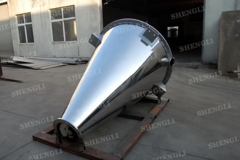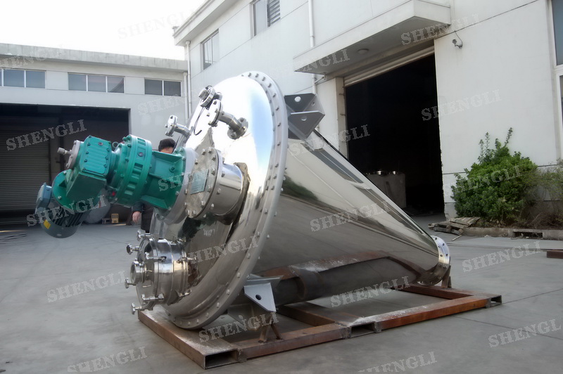 描述:雙螺旋錐形攪拌機內部安裝非對稱傾斜螺旋,雙螺旋自身旋轉,提升物料,并有公轉減速箱驅動,沿錐體中心軸公轉,360度攪拌物料,擁有非破壞性攪拌以及快速且無殘留卸料的特點。該設備采用上蓋耐壓橢圓封頭結構、配置手動錯位閥,錐形中心軸噴液,內外表面做鏡面處理,假設人孔、觀察口、排氣口等設置。