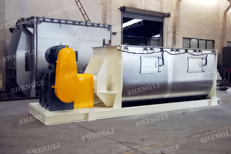 工作原理:臥式攪拌機采用U型筒體,內設平行主軸,主軸上安裝若干傾角式槳葉刀,不僅能快速高效的攪拌物料,且不會破壞物料,不會卡料。