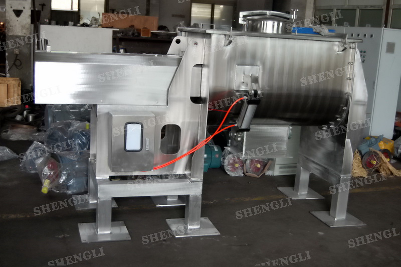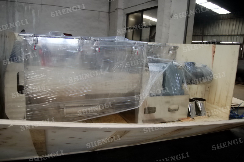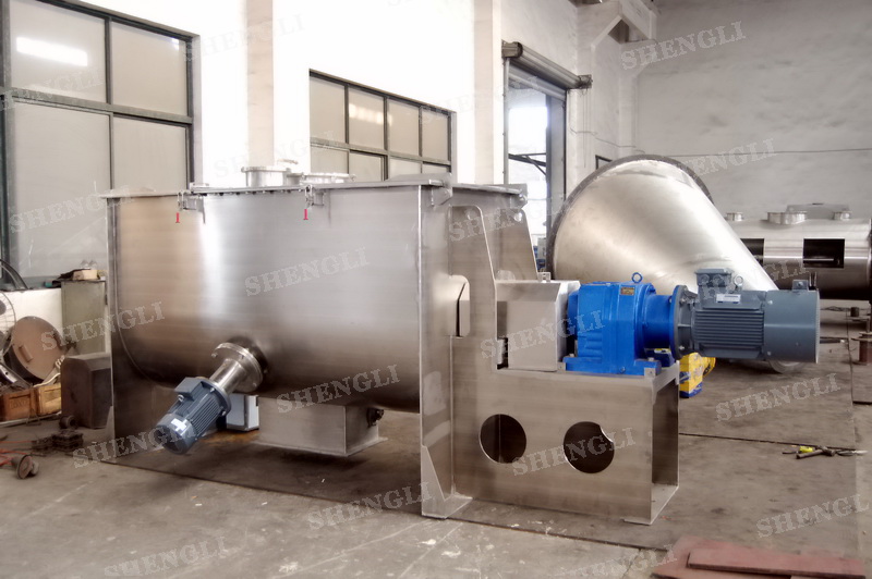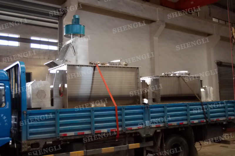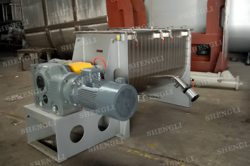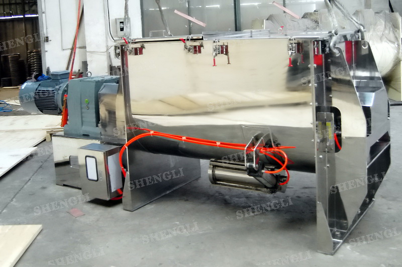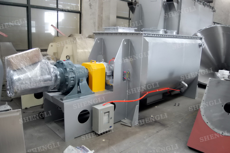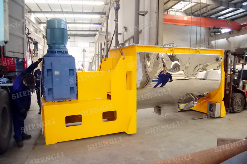 工作原理:螺帶混合機采用U型筒體,內裝平行主軸,主軸上安裝正反雙向的盤條螺帶,不同維度螺帶分內螺帶與外螺帶,物料在螺帶的驅使下反復參混,能夠快速高效的混合。