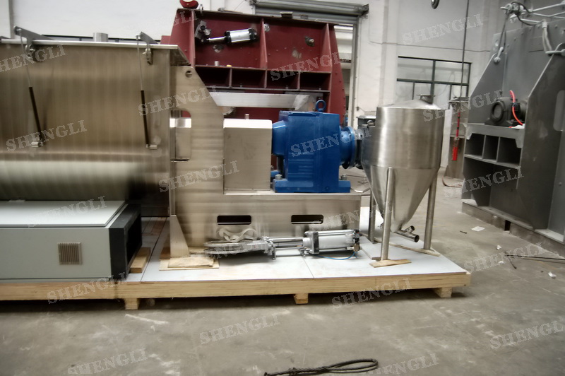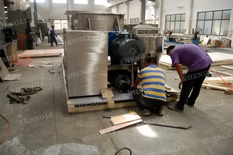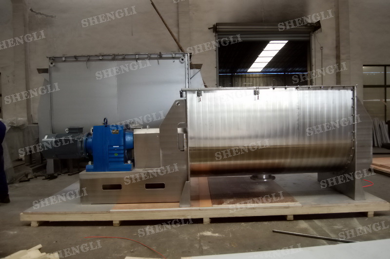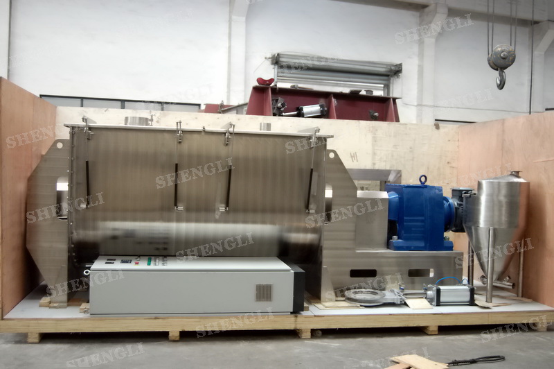 工作原理:螺帶混合機采用U型筒體,內裝平行主軸,主軸上安裝正反雙向的盤條螺帶,不同維度螺帶分內螺帶與外螺帶,物料在螺帶的驅使下反復參混,能夠快速高效的混合。