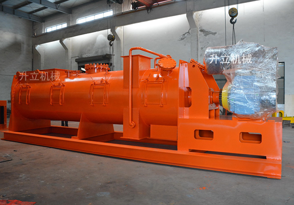 投入預破碎的物料、固體顆粒、廢液、污泥、礦渣等各種物料充分混合,達到均質化效果。該裝置為連續性混合設備,采用單軸槳葉式攪拌、內襯耐磨板、特殊設計的出料閘板,結合稱重系統、檢視系統、等組合部件,達到連續化作業、高產能的工藝。