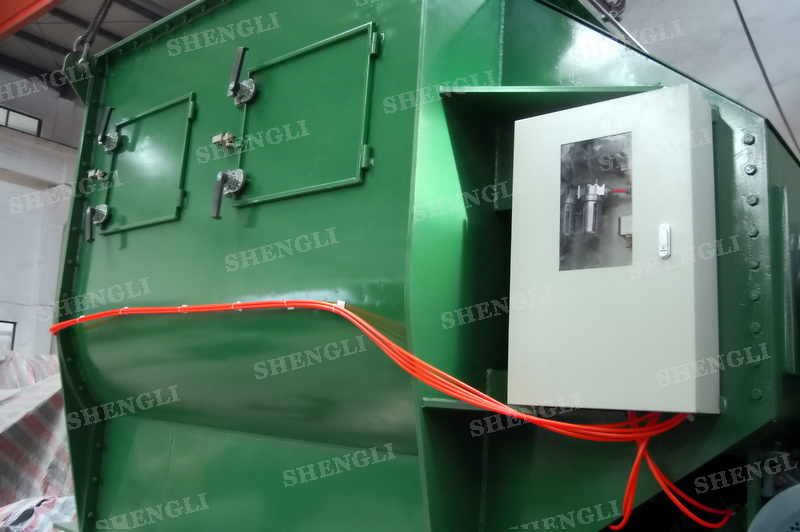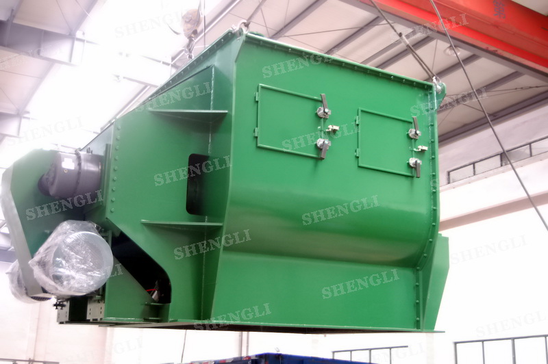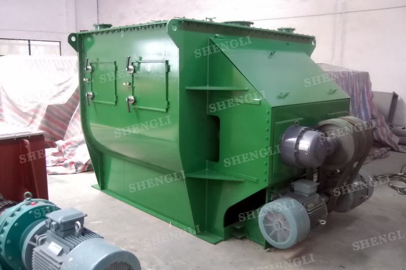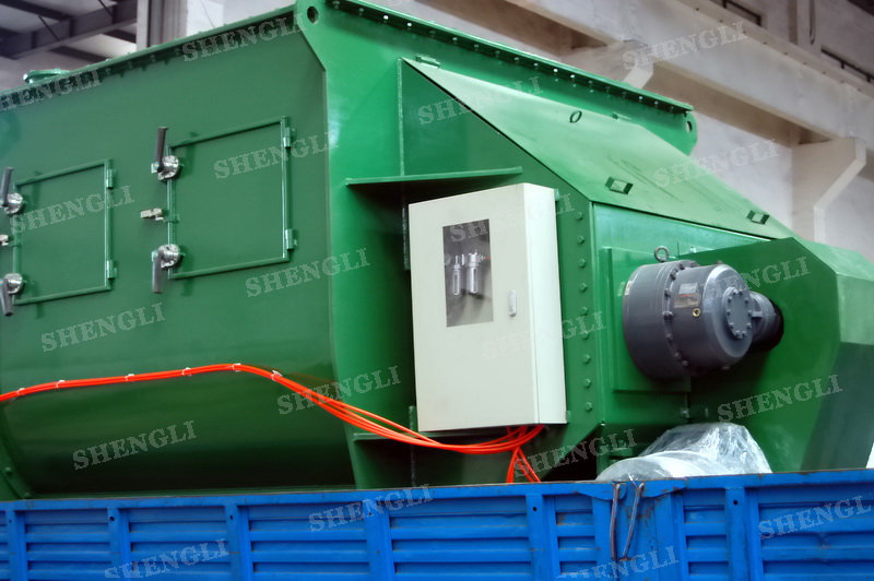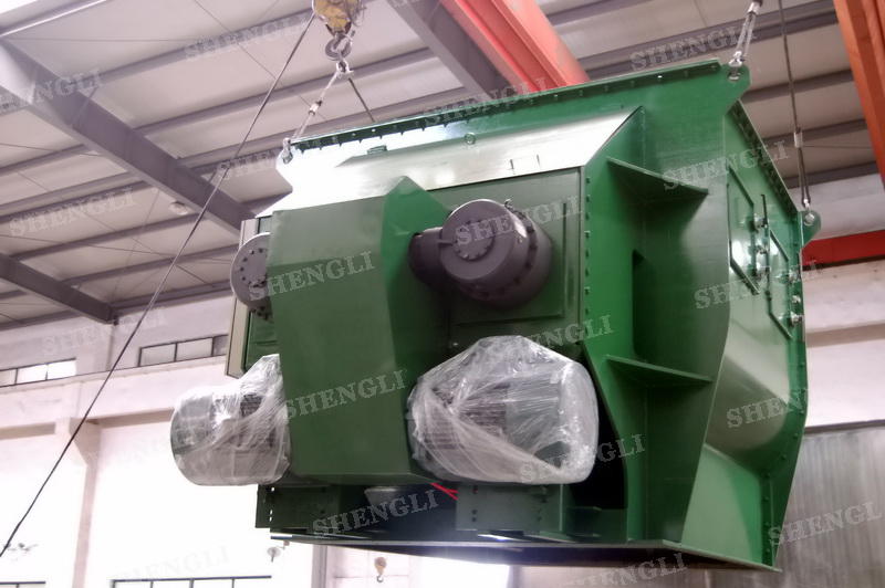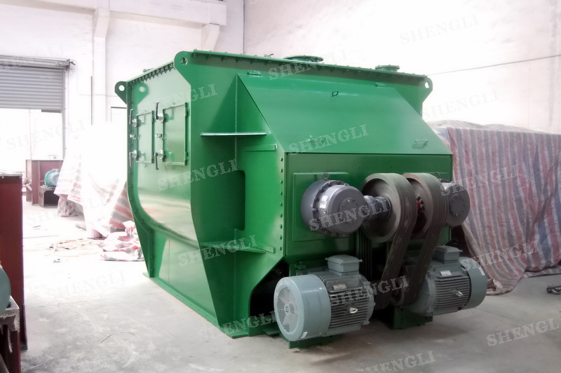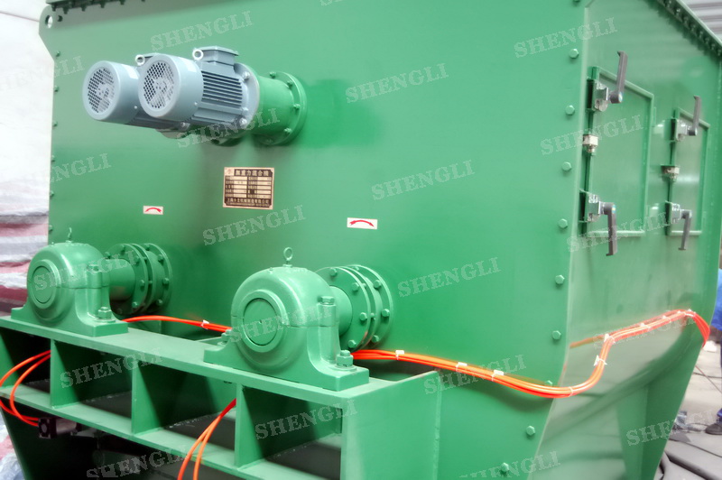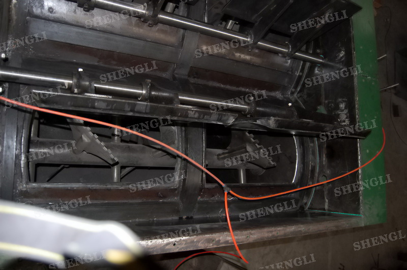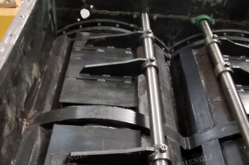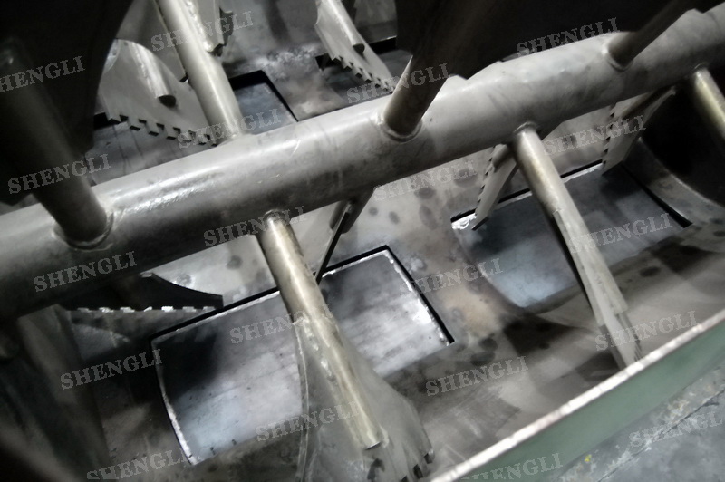 工作原理:雙軸攪拌設備采用雙U型筒體,內裝平行的雙主軸,主軸設有對稱的多組槳葉,其雙軸的運行軌跡部分重合形成嚙合空間,雙軸在受雙電機同步驅動,同步的對稱向外翻攪物料,致使物料能夠達到瞬間失重點,該設備具備高效物料無差別的混合能力。
