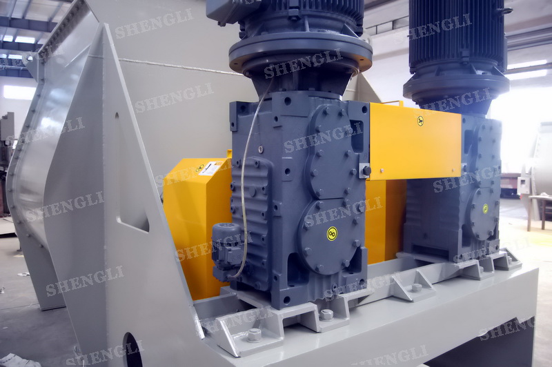 工作原理:臥式雙軸攪拌機采用雙U型筒體,內裝平行的雙主軸,主軸設有對稱的多組槳葉,其雙軸的運行軌跡部分重合形成嚙合空間,雙軸在受雙電機同步驅動,同步的對稱向外翻攪物料,致使物料能夠達到瞬間失重點,該設備具備高效物料無差別的混合能力。